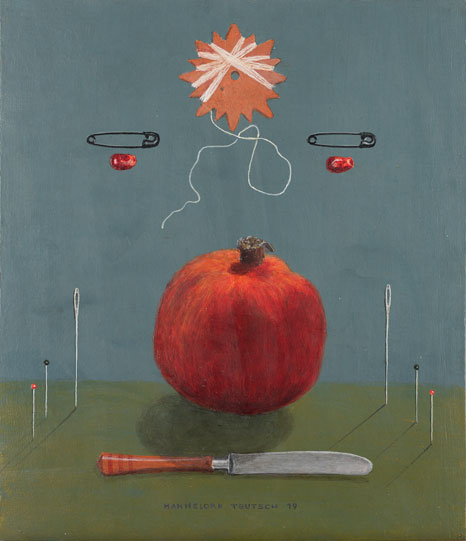 Stillleben mit Granatapfel · 28 x 24,5 cm · Tempera auf Hartfaser · 2019