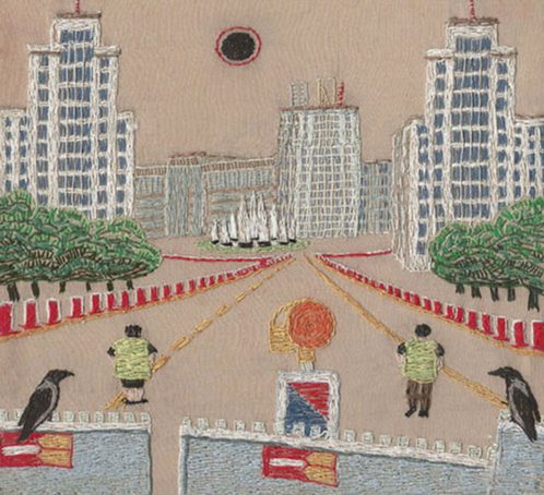 Strausberger Platz · 13,7 x 15 cm · Nähgarn auf Seide · 2020
