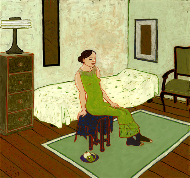 Mädchen in grünem Kleid · 47 x 50 cm · Hinterglasmalerei · ca. 2004