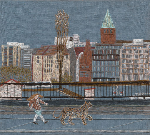 Mühlendammbrücke · 13,5 x 15 cm · Nähgarn auf Baumwolle · 2021