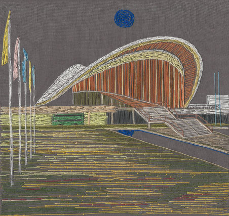 Haus der Kulturen der Welt · 14 x 14,8 cm · Nähgarn auf Baumwolle · 2021