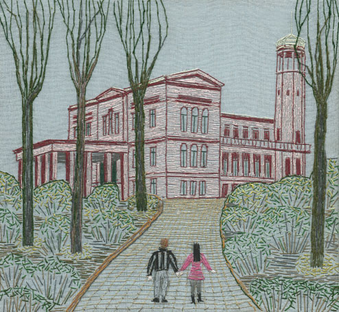 Schloss Biesdorf · 13,5 x 15 cm · Nähgarn auf Baumwolle · 2021/22