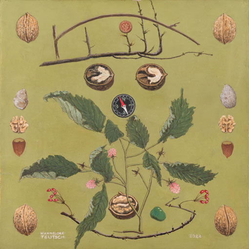 Nüsse und Früchte · 30 x 30 cm · Tempera auf Holz · 2022