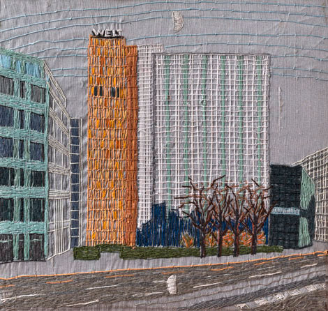Das Welthochhaus · 13,8 x 15 cm · Nähgarn auf Seide · 2023