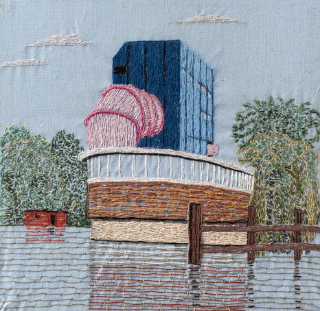 Umlaufpumpe im Tiergarten · 13,2 x 14,2 cm · Nähgarn auf Baumwolle · 2024