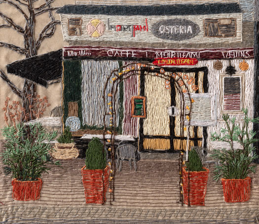 Mortifami in Friedenau · 12,2 x 13,8 cm · Nähgarn auf Seide · 2024