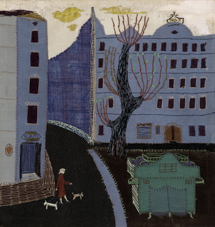 Am Helmholtzplatz · 20 x 19 cm · Applikation auf Seide · 1967