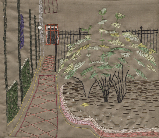 Berliner Hinterhof 14,3 x 13 cm · Seide auf Seide · ca. 1974