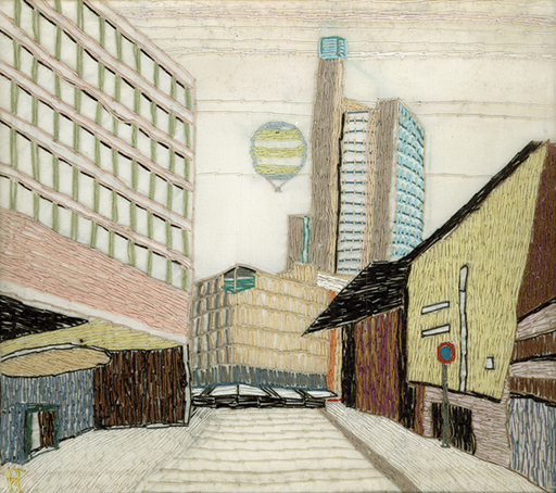 Am Potsdamer Platz · 15 x 13,2 cm · Seide auf Seide · 2002