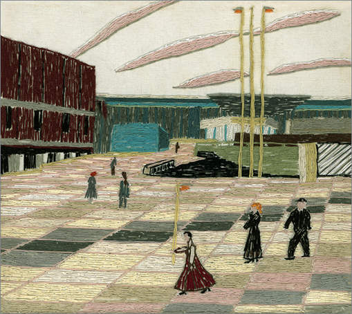 Platz vor dem Kulturforum · ca. 13,5 x 15 cm · Nähseide und Nähgarn auf Seide · 2009
