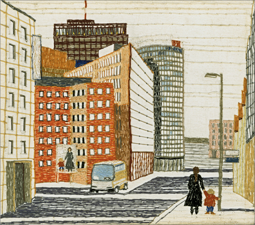 Stresemannstraße am Potsdamer Platz · ca. 13,5 x 15 cm · Nähseide und Nähgarn auf Seide · 2009