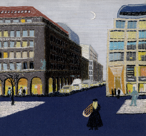 Die Berliner Mitte · ca. 13,5 x 15 cm · Applikation auf Seide und Baumwolle · 2012