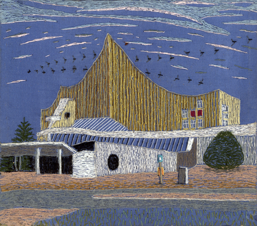 Die Philharmonie · ca. 13,5 x 15 cm · Nähseide auf Seide · 2011