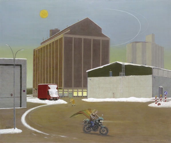 | Die ruhlosen Wege · 100 x 120 cm · Tempera auf Leinwand · 2015 (mit dem Verkündigungsengel nach Fra Angelico) |