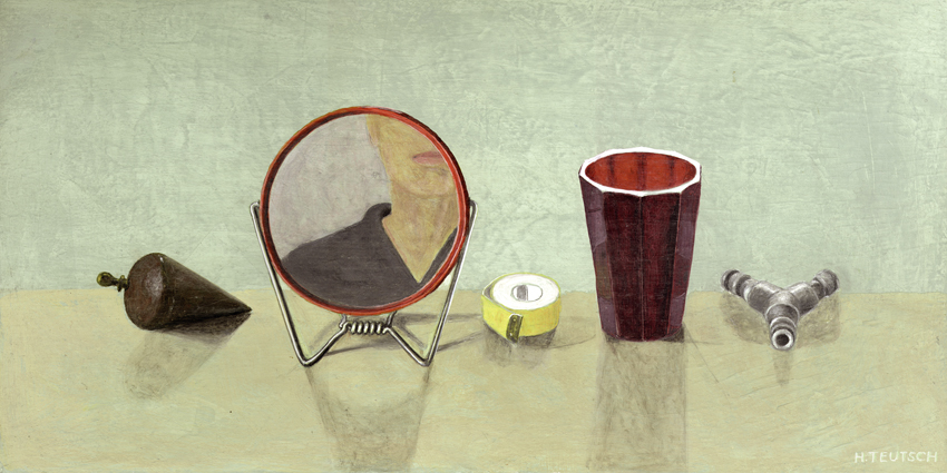 Stillleben mit Spiegel · 28,5 x 57 cm · Tempera auf Holz · 2002